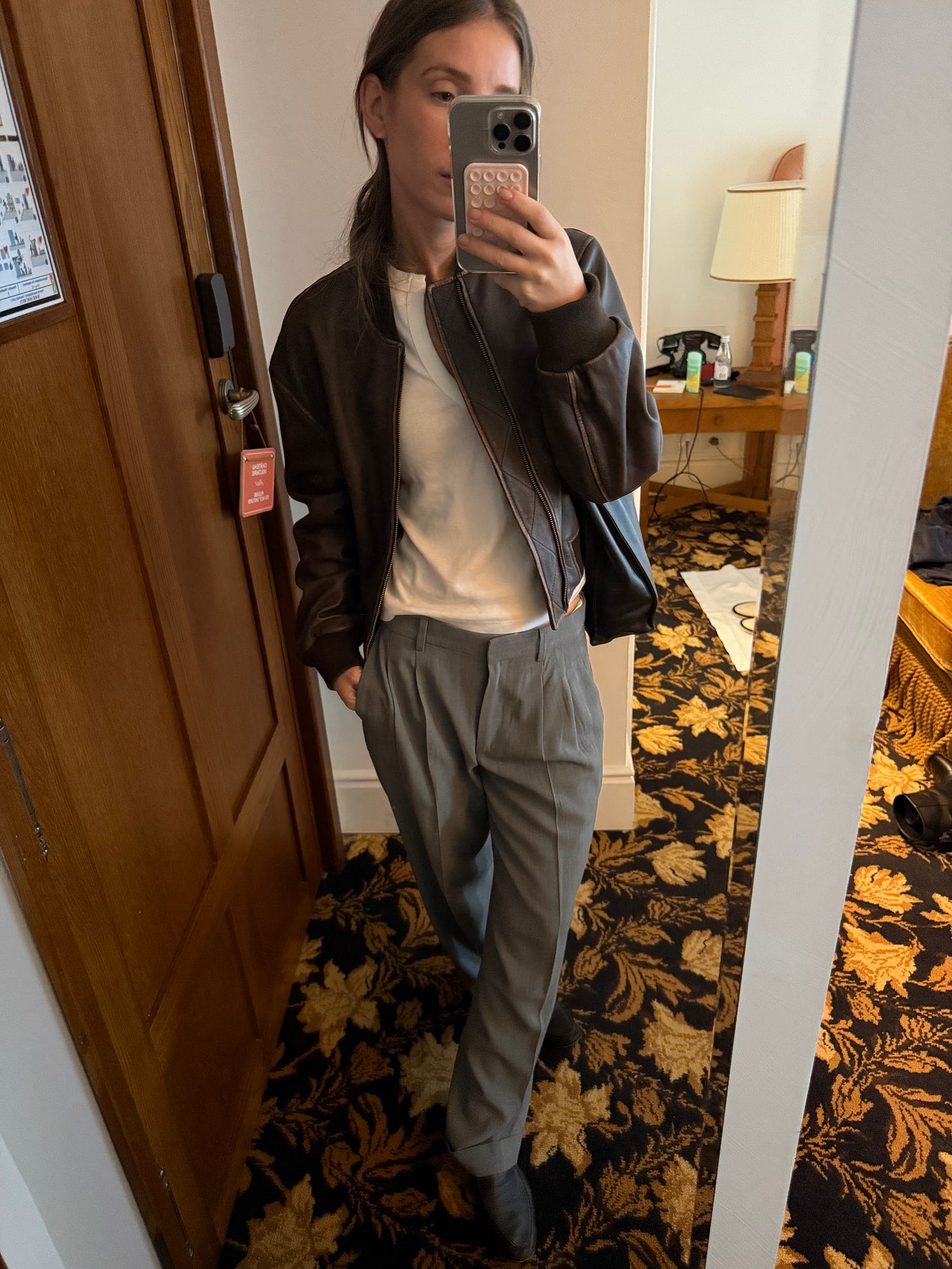 I’m intentional with the palette. I want outfits to be easy but still chic and streamlined, with room to deviate. I always feel most put together in monochrome or all darks with one clean pop of contrast in fall/winter clothes.
